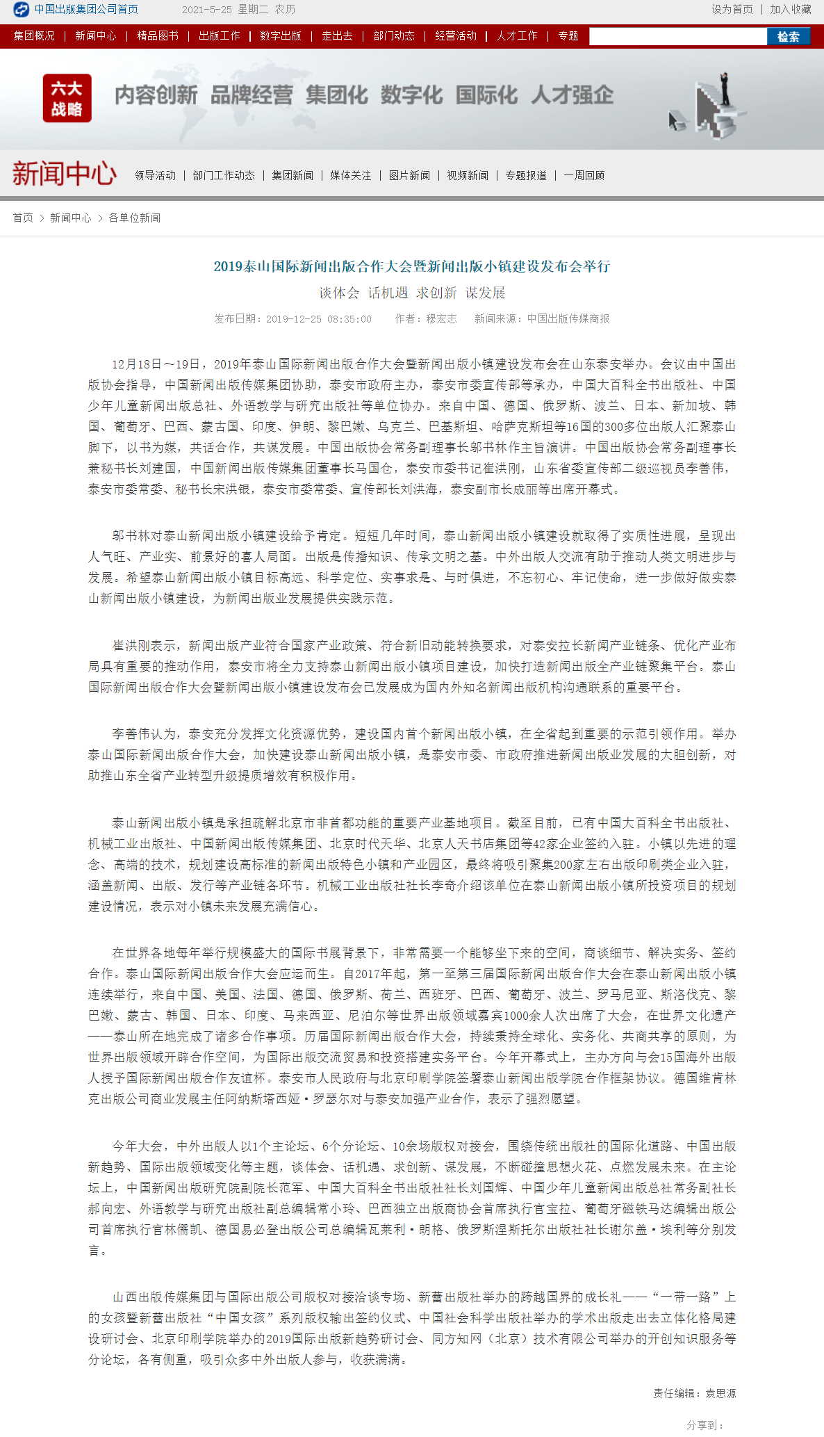 The 3rd International Press and Publishing Cooperation Conference (2019· Tai'an, China) and the Conference on Construction Progress of Mount Tai Press and Publishing Town